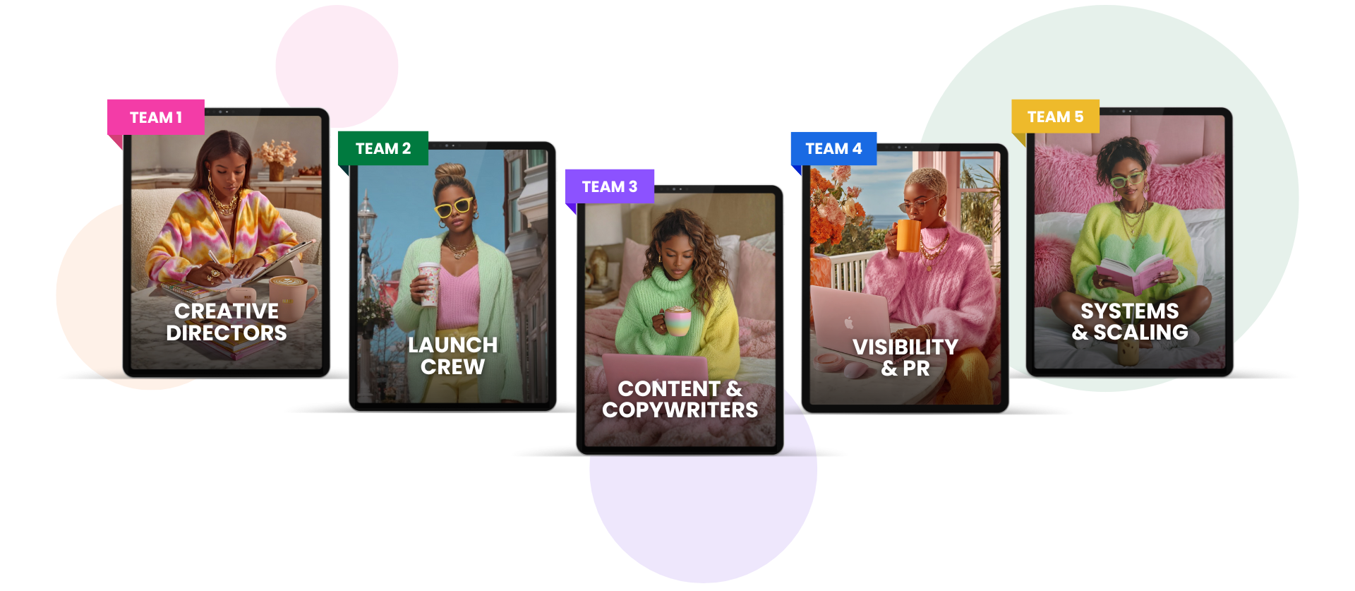 Your new team of ai-employees helps you deploy ai across the 5 key areas of business, So you can finally stop spiralling in overwhelm, overthinking, and ghosting your own ideas,