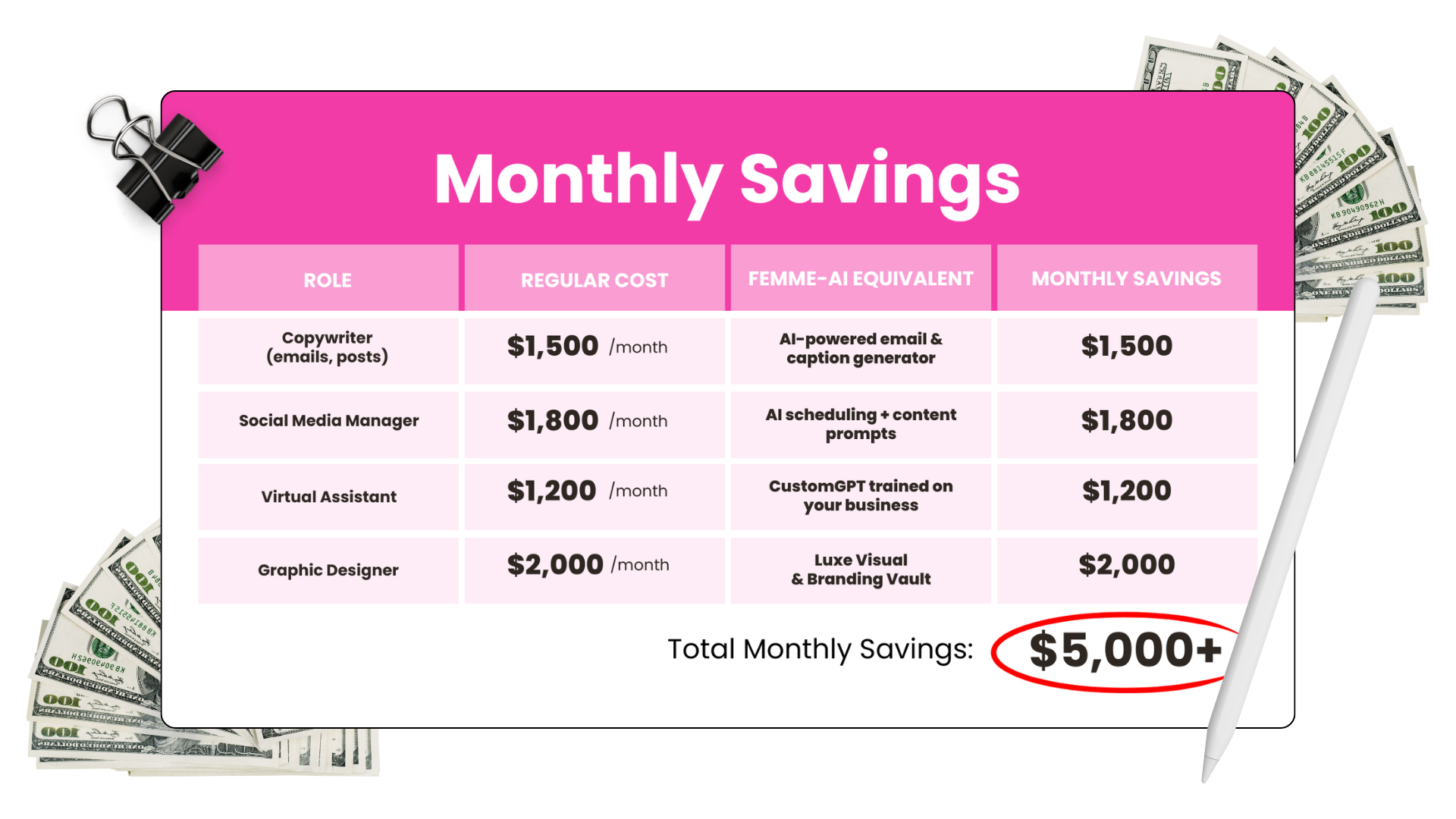Total Monthly Savings: $5,000+/month back in your pocket. and scale from there. You don’t need more time. You need a secret weapon.