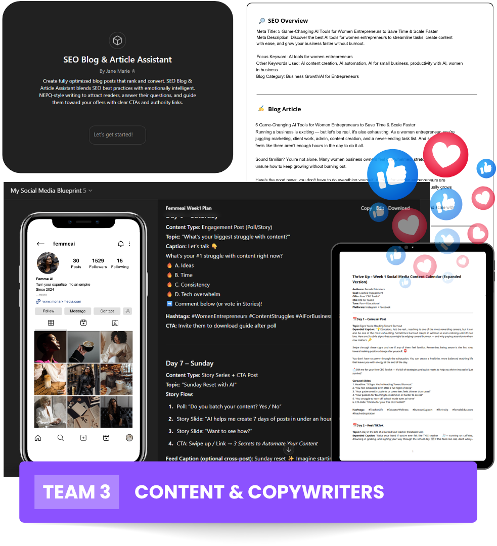 And deep down, you know the only way forward is with smarter systems, not more stress. That’s where Femme-AI comes in: to help you reclaim your time, your creativity, and your energy.