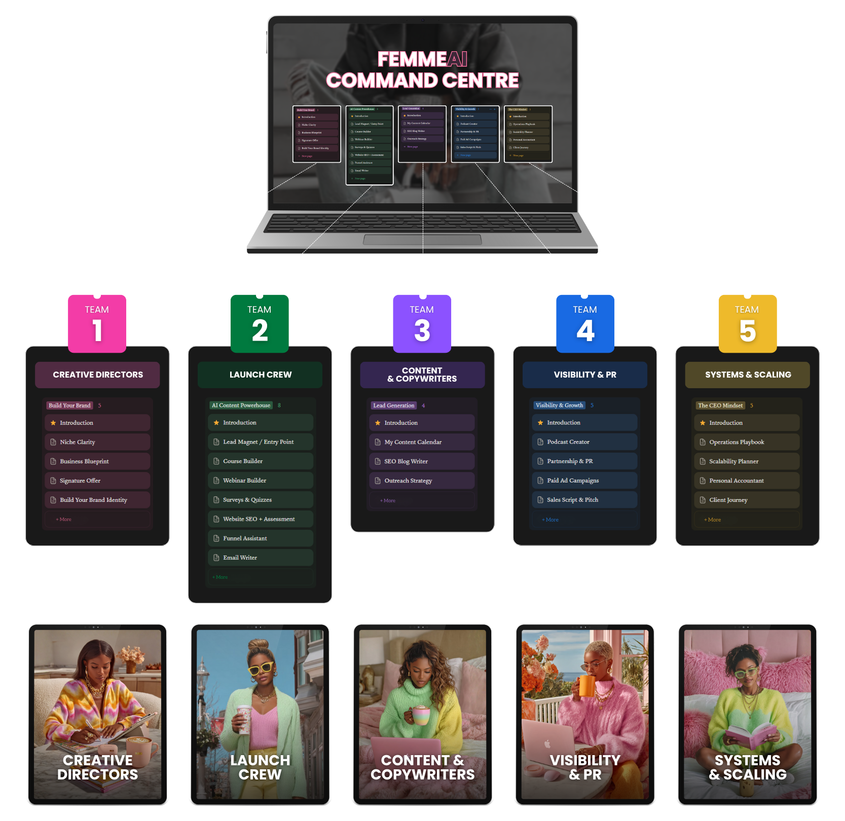 The Femme-AI Command Centre is your all-in-one AI Employee Suite for scaling with style, smarts, and speed.